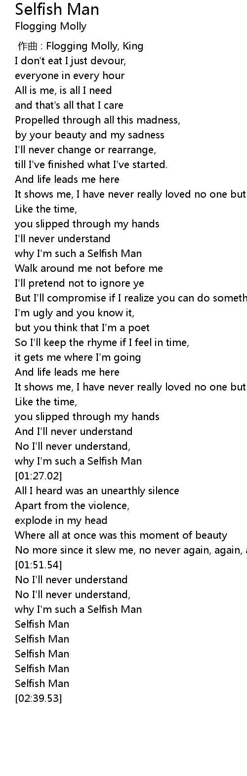 | [01:09.38] | It shows me, I have never really loved no one but me |