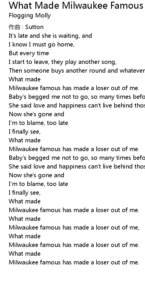 | Song | What Made Milwaukee Famous (Made a Loser out of Me) |