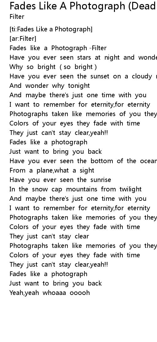| [01:08.911] | Photographs taken like memories of you they disappear |