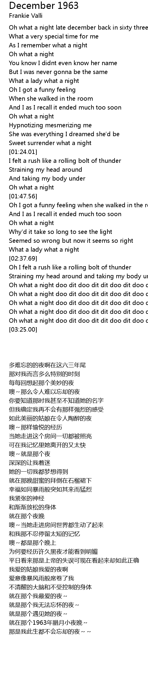 | [03:08.45] | Oh what a night doo dit doo dit dit doo dit doo dit dit |