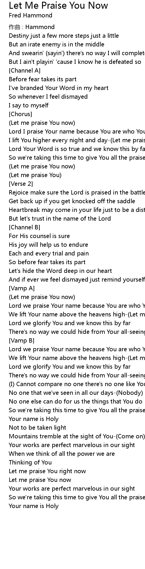 | Lord I praise Your name because You are who You are Let me praise You now | |