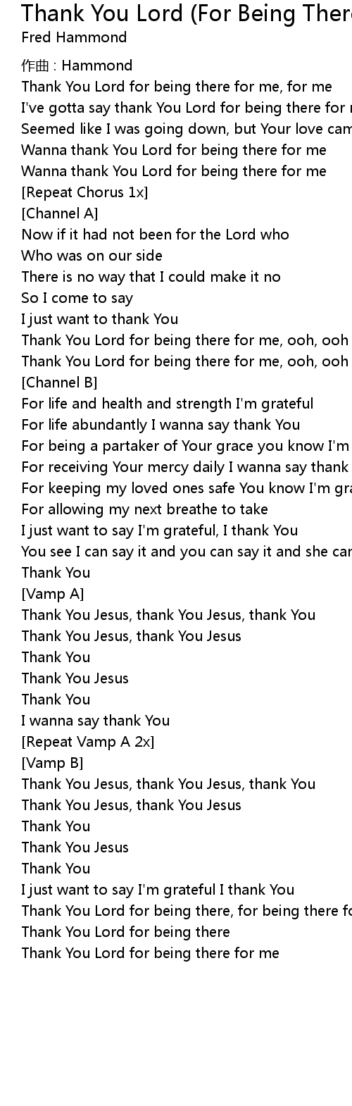 | Thank You Lord for being there, for being there for me, ooh, ooh | |