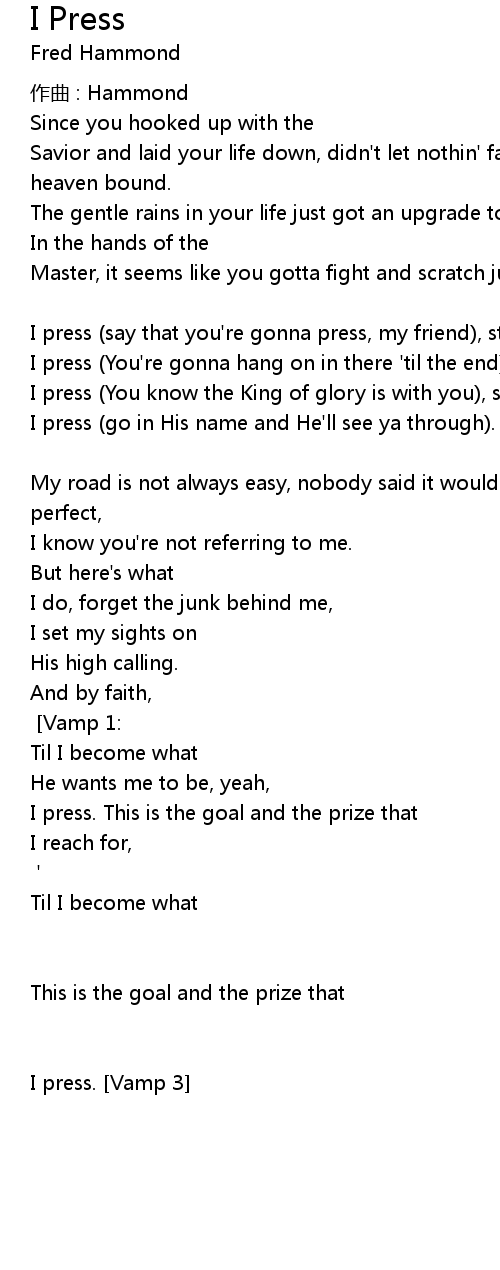 | I press. [Vamp 2:] ' | |