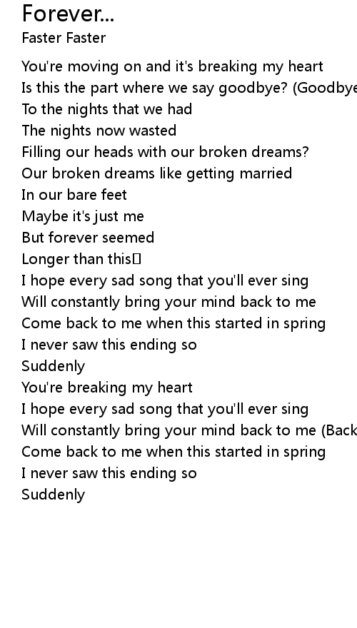 | You' re moving on and it' s breaking my heart | |