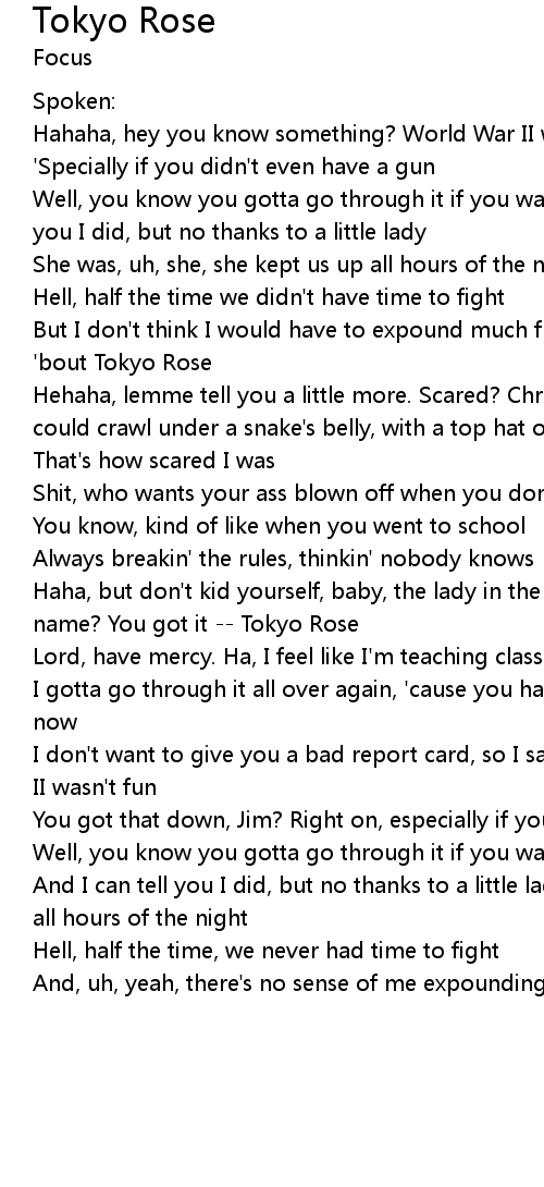 But I don't think I would have to expound much further 'cause everyone knows 'bout Tokyo Rose |