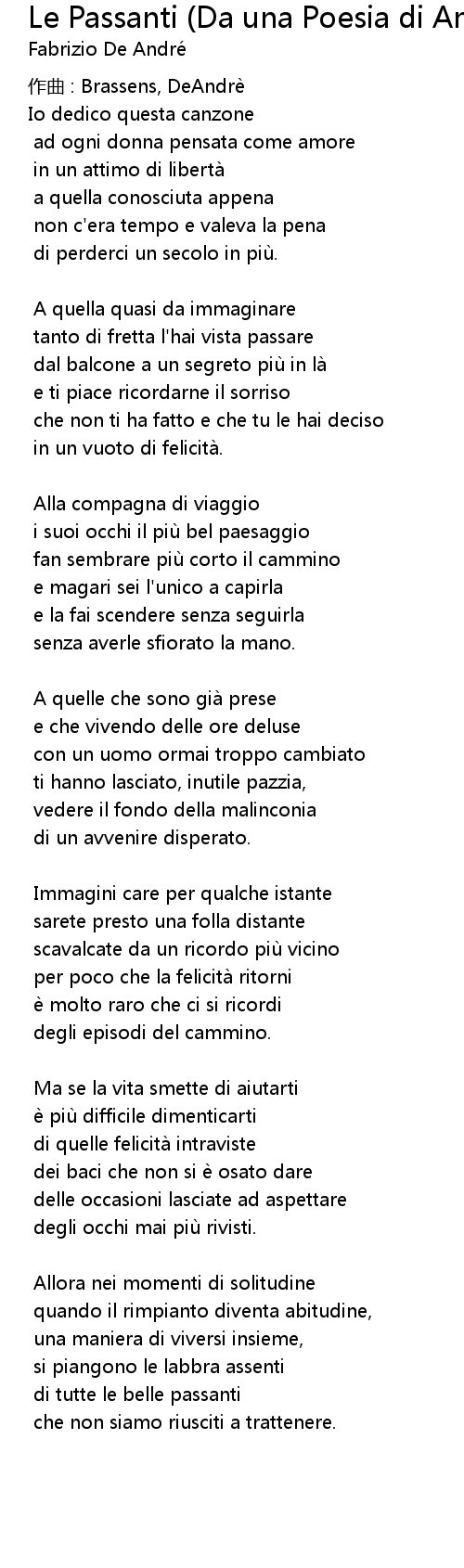 | Song | Le Passanti (Da una Poesia di Antoine Paul) |