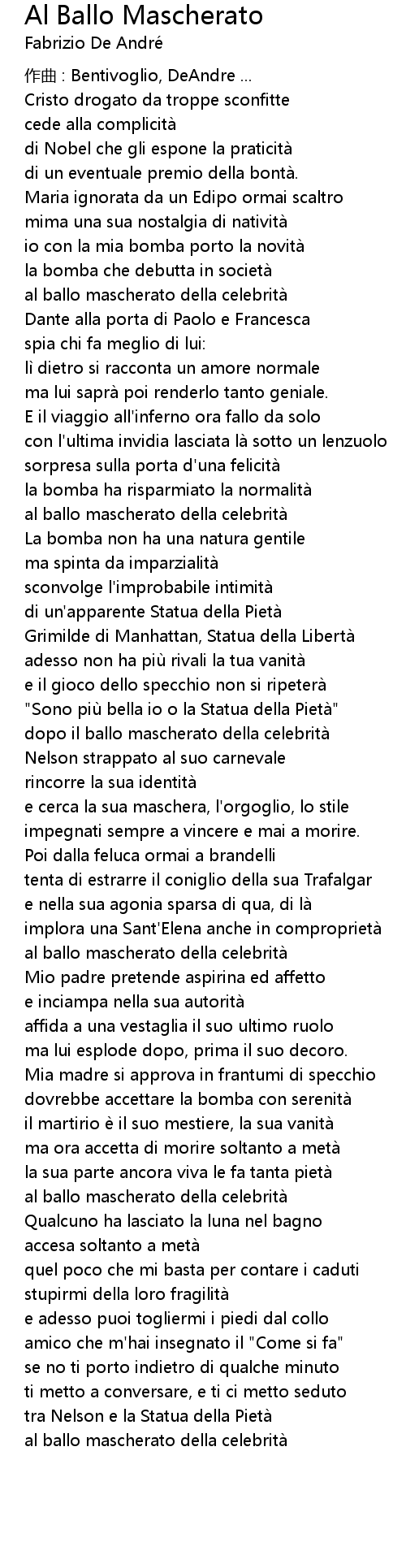 | e cerca la sua maschera, l'orgoglio, lo stile | |