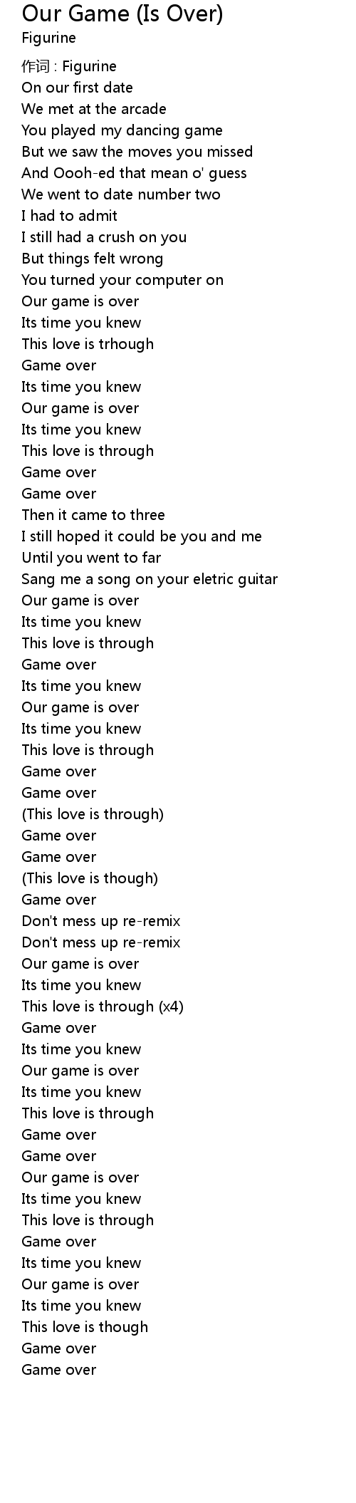 | Song | Our Game (Is Over) |