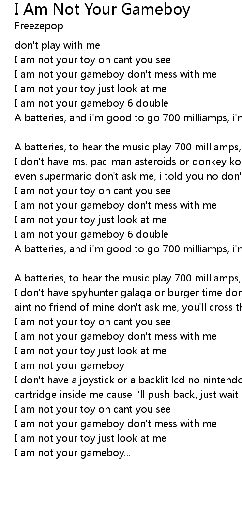 I don't have a joystick or a backlit lcd no nintendo logo don't push that cartridge inside me cause i'll push back, just wait and see don't play with me |