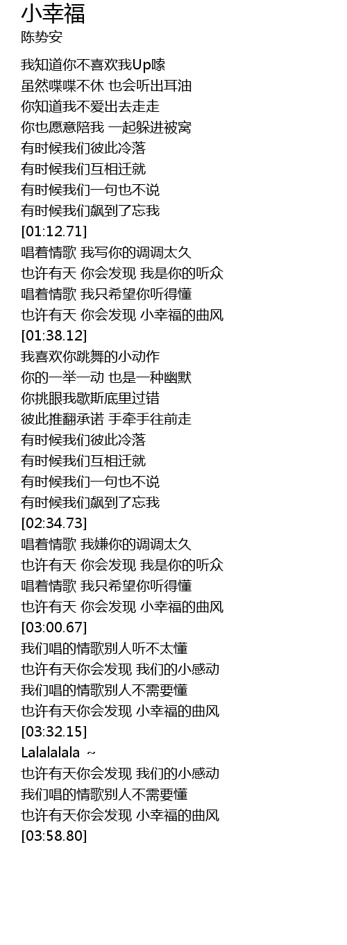 | [03:50.18] | 也许有天你会发现 小幸福的曲风 |