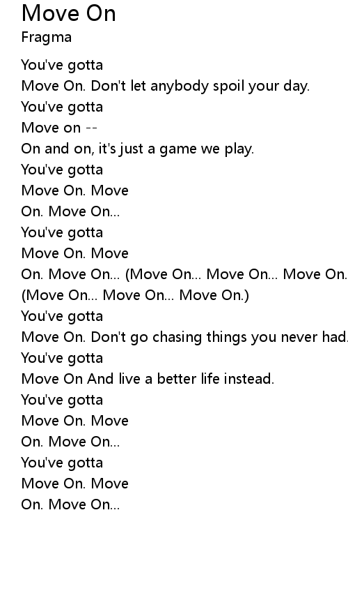 | On. Move On... (Move On... Move On... Move On.) (Move On... Move On... Move On.) (Move On... Move On... Move On.) | |