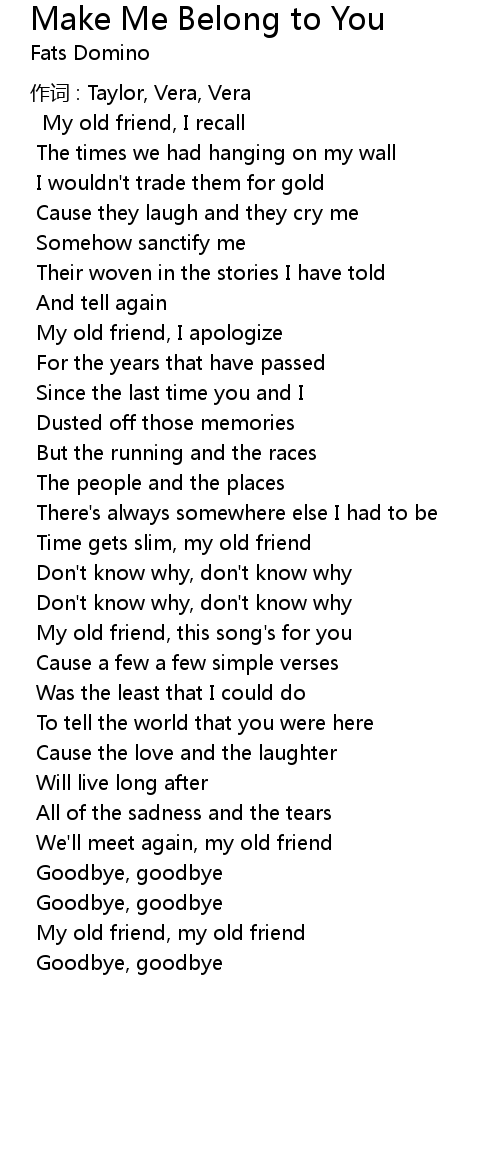 | My old friend, this song' s for you | |