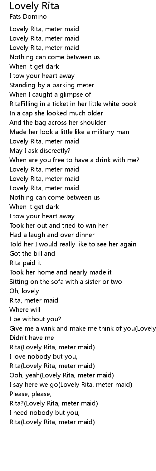 Rita?(Lovely Rita, meter maid) |