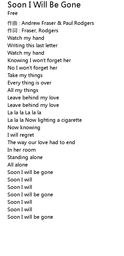 | 作曲 : Andrew Fraser & Paul Rodgers | |
