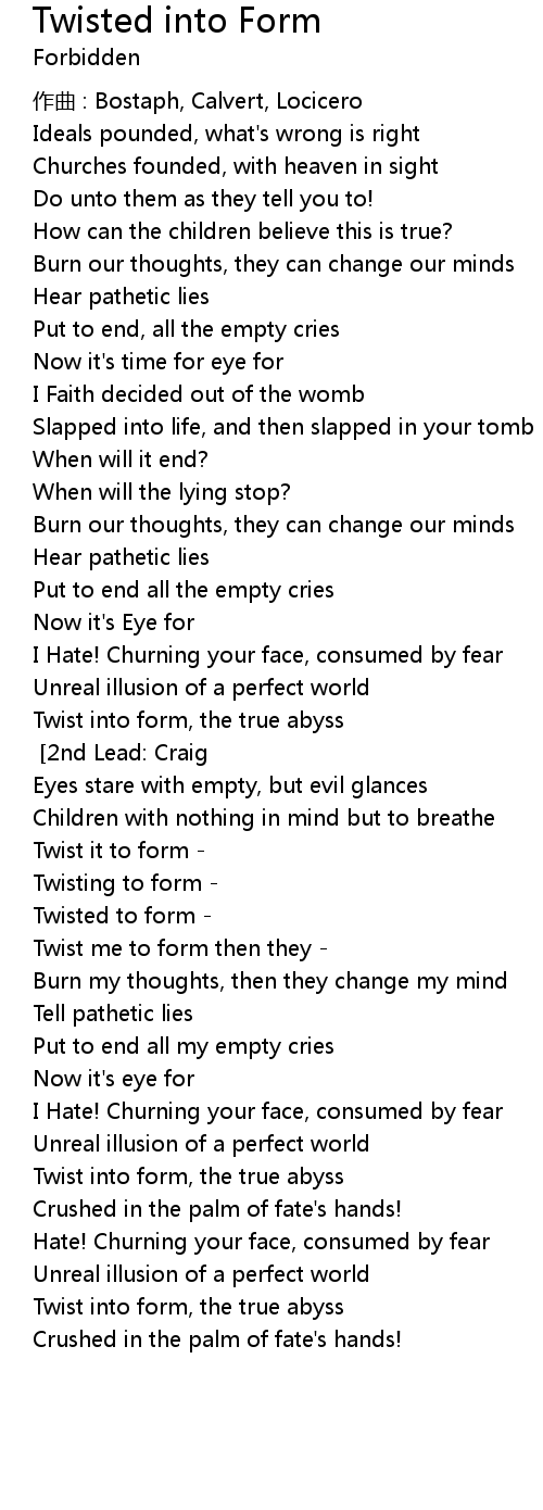 | Song | Twisted into Form |