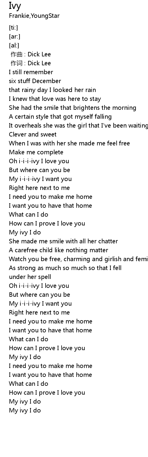 | [01:58.99] | Oh i-i-i-ivy I love you |