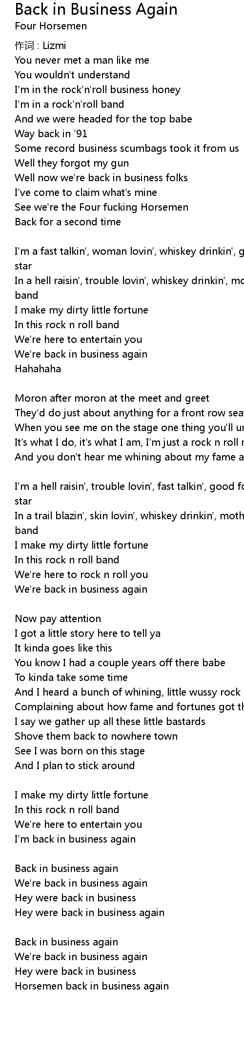 | Song | Back in Business Again |