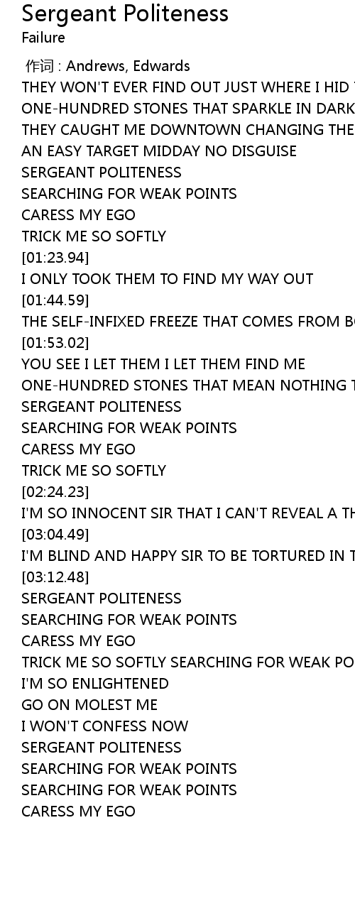 | [03:45.80] | SERGEANT POLITENESS |