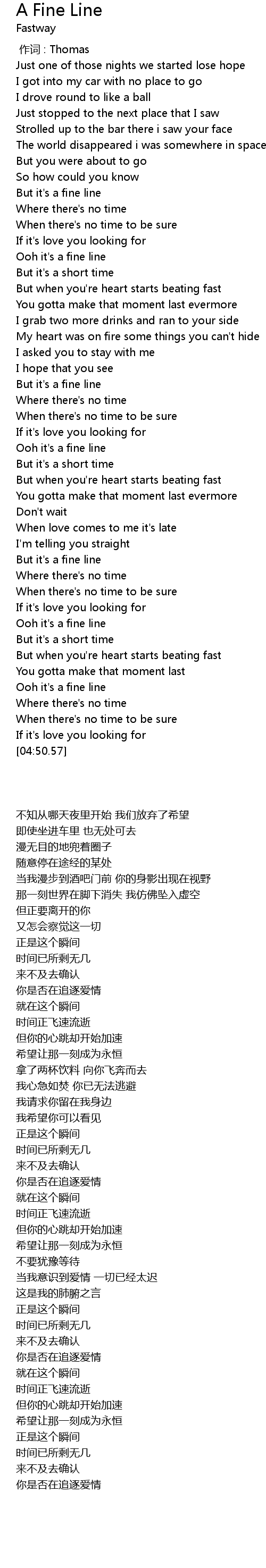 | [01:53.75] | Ooh it's a fine line |