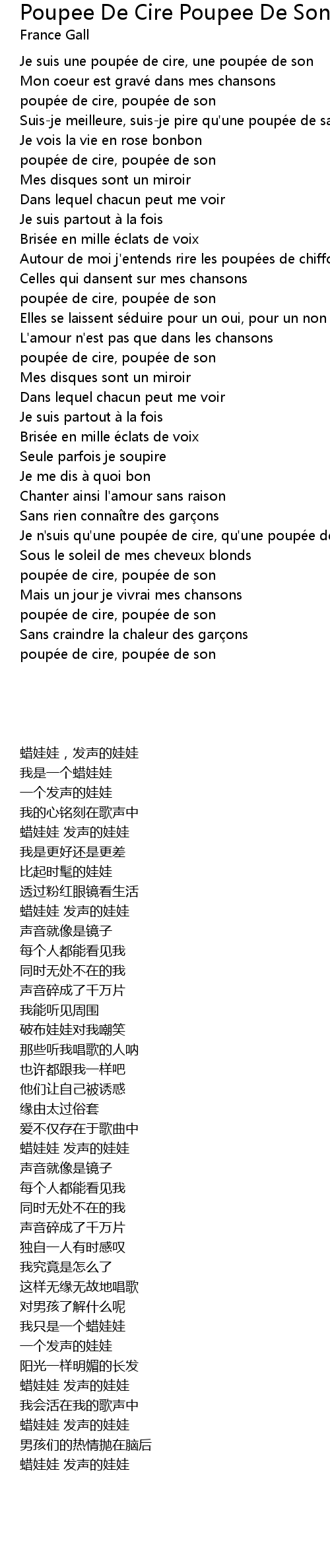 | Je n' suis qu' une poupé e de cire, qu' une poupé e de son | |