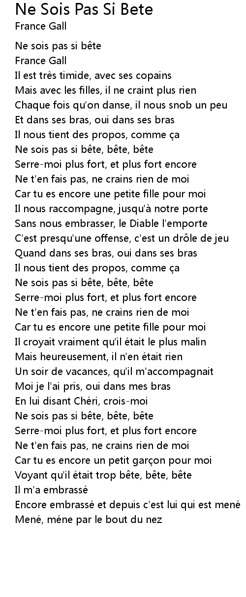 | Song | Ne Sois Pas Si Bete |