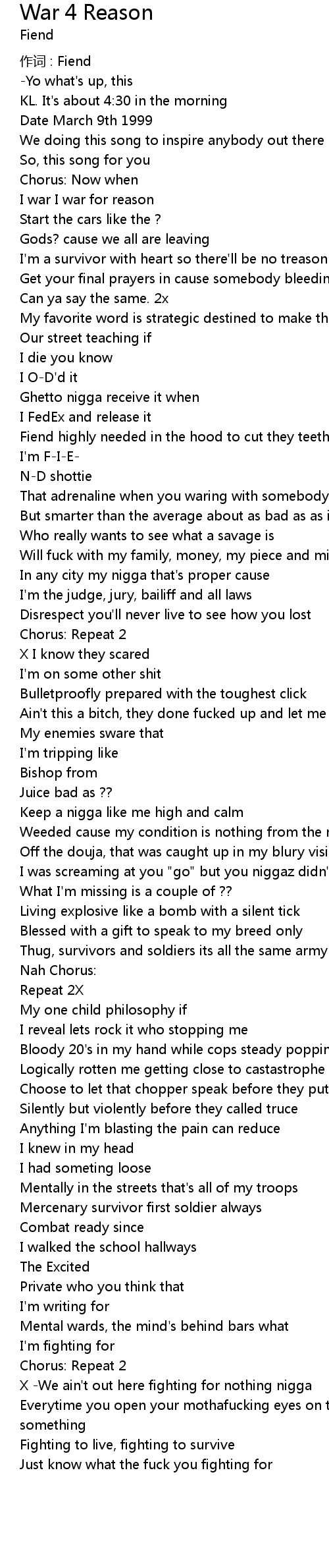 | I war I war for reason | |