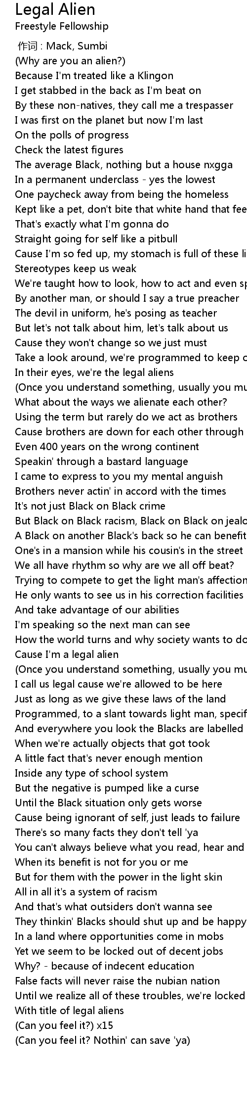 | [00:45.96] | In their eyes, we' re the legal aliens |