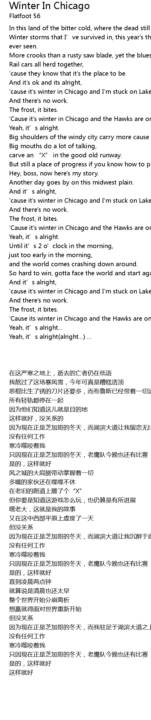 | [00:53.73] | 'cause it's winter in Chicago and I'm stuck on Lake Shore Drive. |