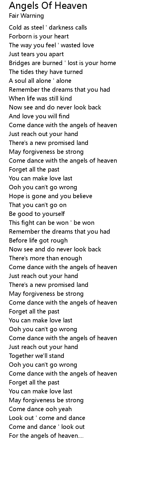 Angels Of Heaven Lyrics