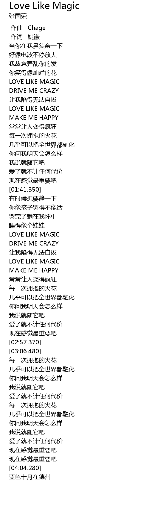 | [04:10.900] | lán sè shí yuè zài dé zhōu |