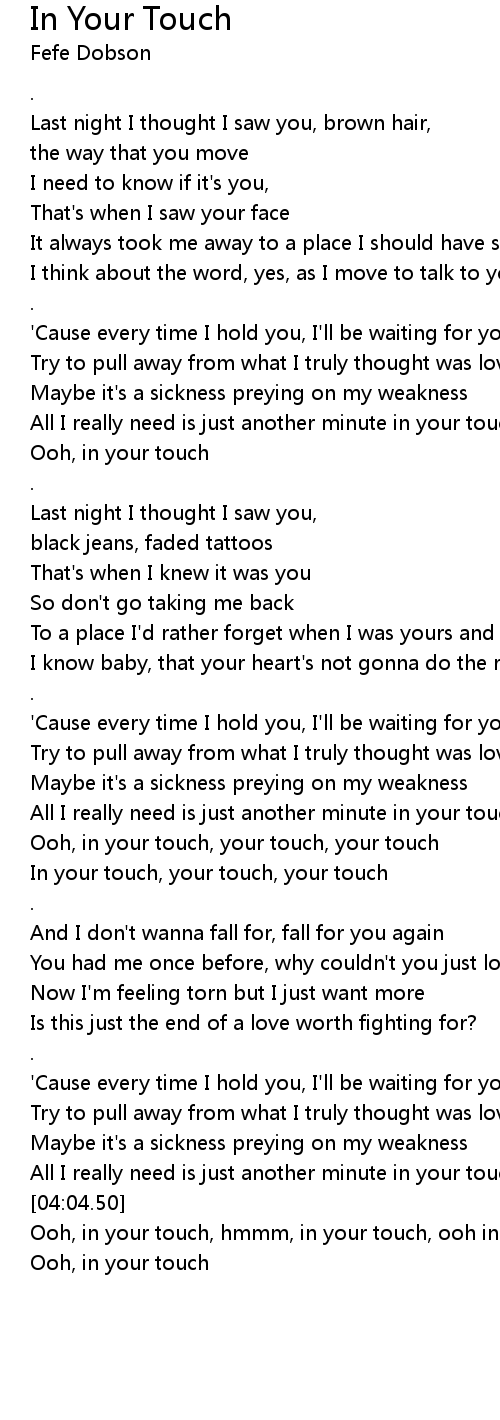 Ooh, in your touch, hmmm, in your touch, ooh in your touch |