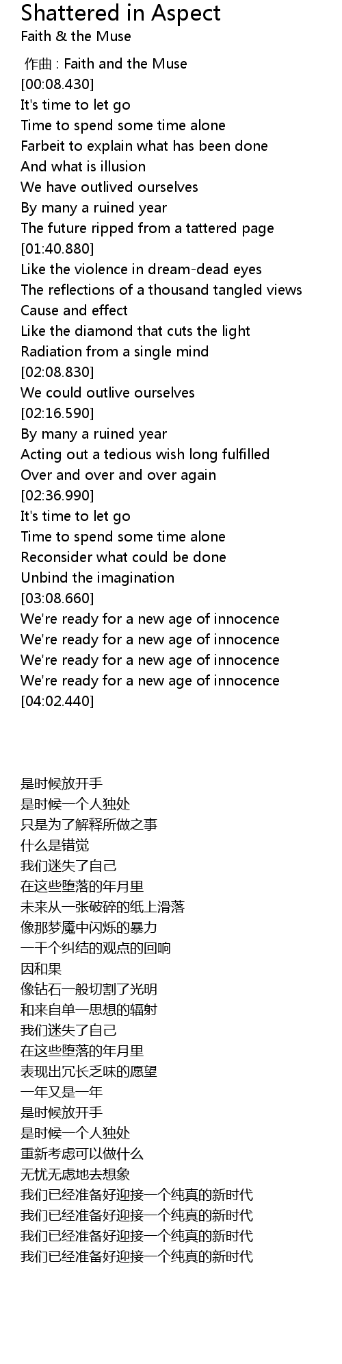 | [03:23.950] | We're ready for a new age of innocence |