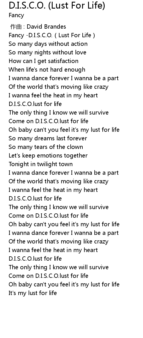 | [00:00.295] | Fancy D. I. S. C. O. Lust For Life |