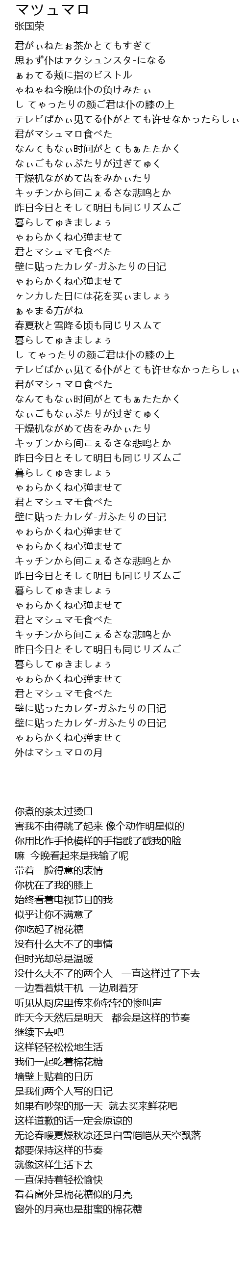 | [03:23.65] | 君とマシュマモ食べた |