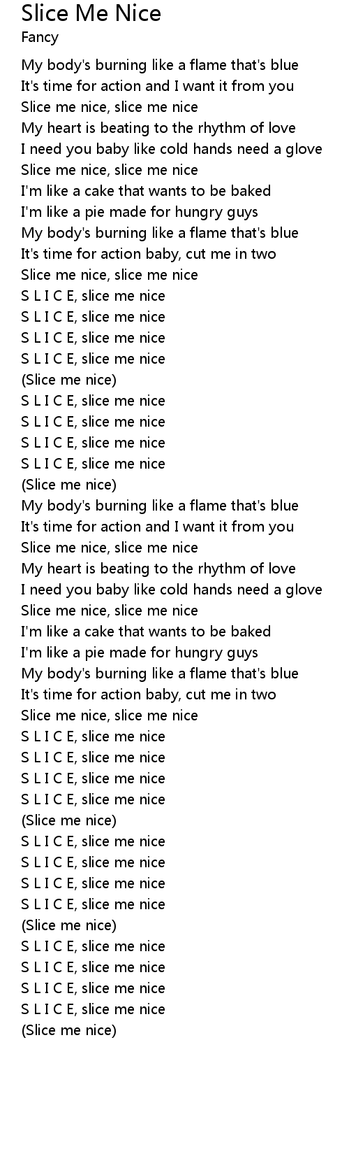 Slice me nice, slice me nice |