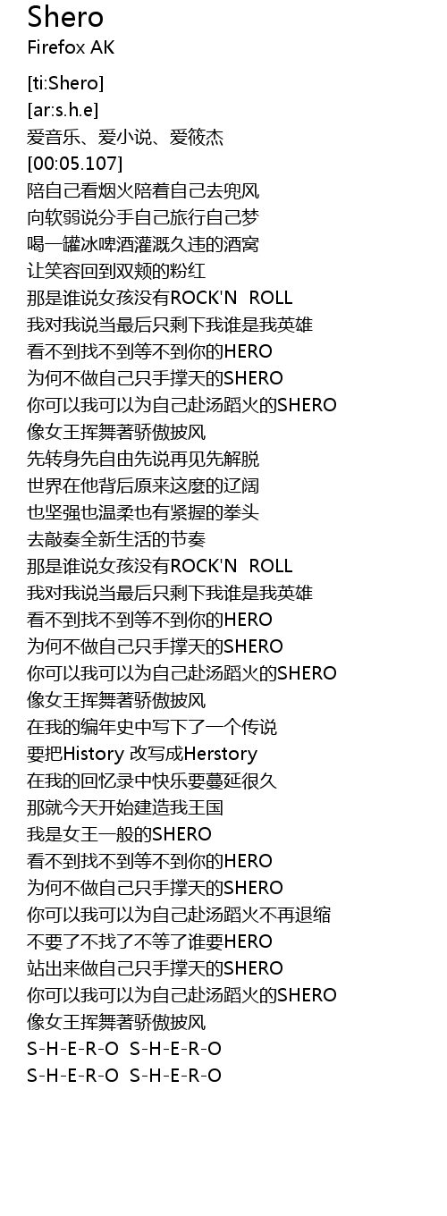 | [03:02.566] | S-H-E-R-O S-H-E-R-O |