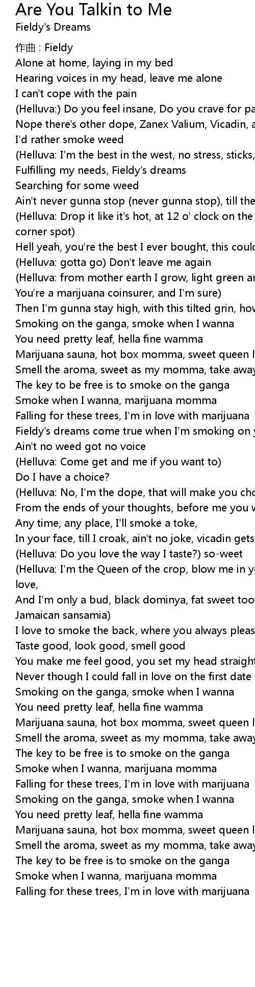 | Fieldy' s dreams come true when I' m smoking on you | |
