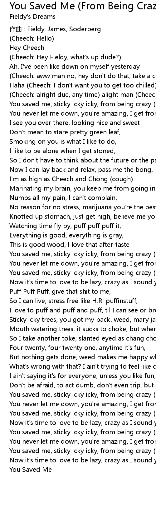 | You saved me, sticky icky icky, from being crazy (I ain't one to be picky) | |