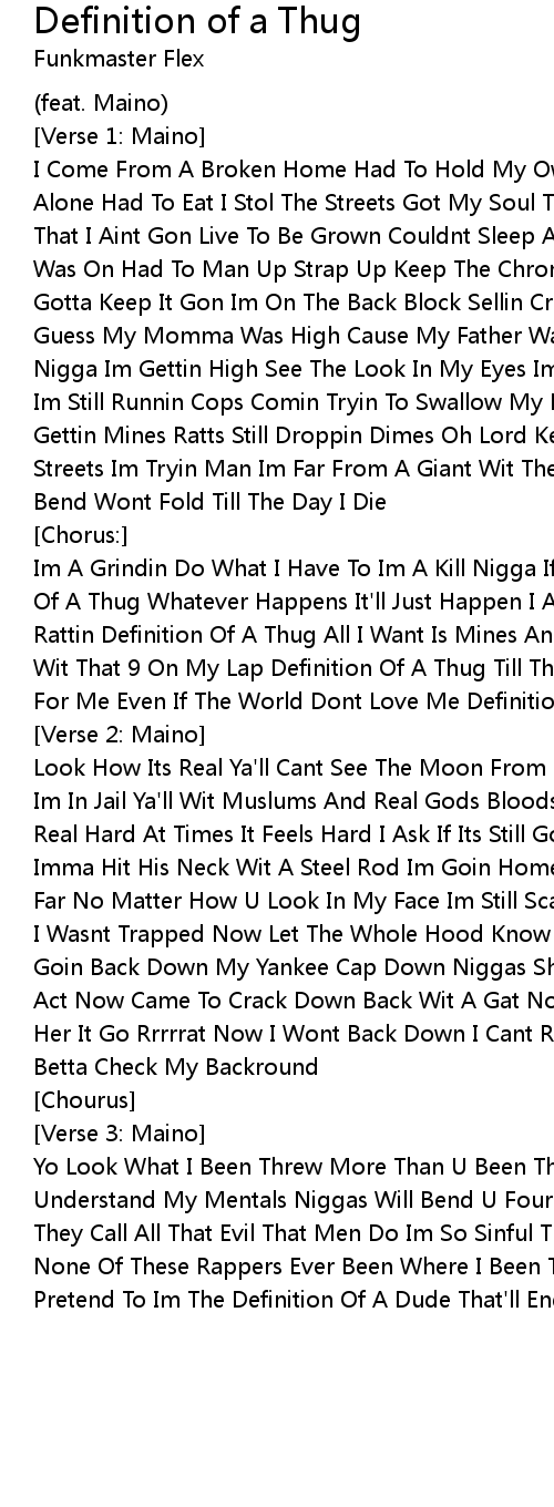 Wit That 9 On My Lap Definition Of A Thug Till The Day The Lord Come