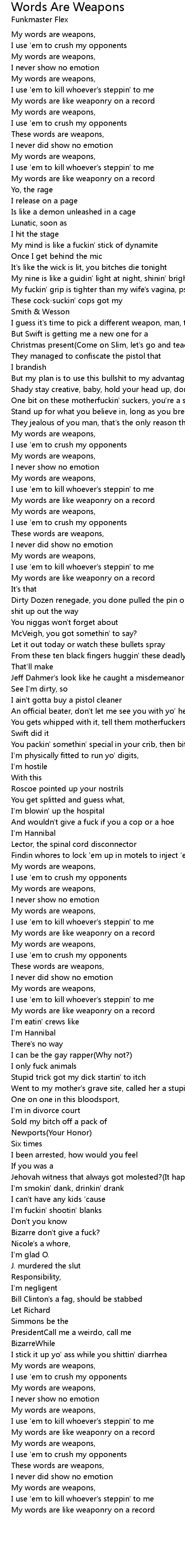 I guess it's time to pick a different weapon, man, the shit's depressin' |