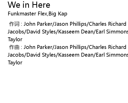 | [00:00.000] | 作曲 : John Parker/Jason Phillips/Charles Richard Cason/Sean Jacobs/David Styles/Kasseem Dean/Earl Simmons/Eve Jeffries/Mel Smalls/Aston Taylor |