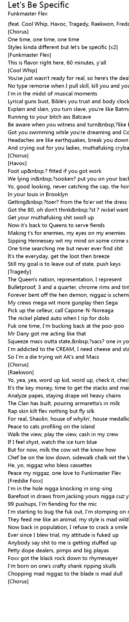 Peace my niggaz, one love to Funkmaster Flex |
