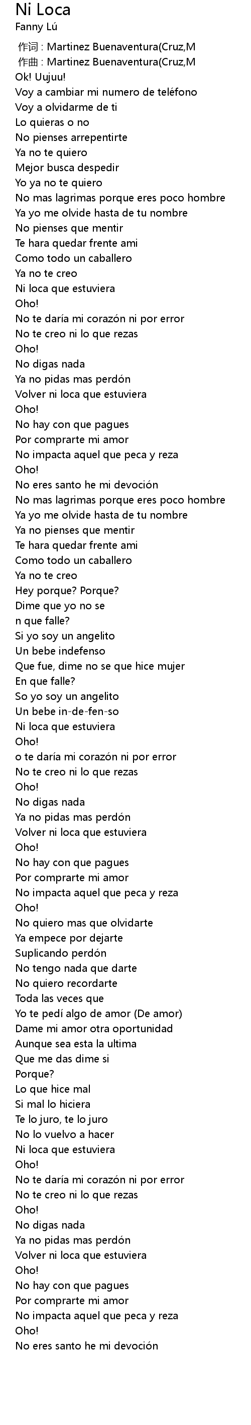 | [00:00.950] | zuo qu : Martinez Buenaventura Cruz, M |