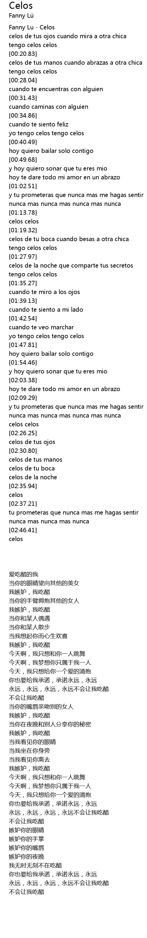 | [00:21.90] | celos de tus manos cuando abrazas a otra chica |