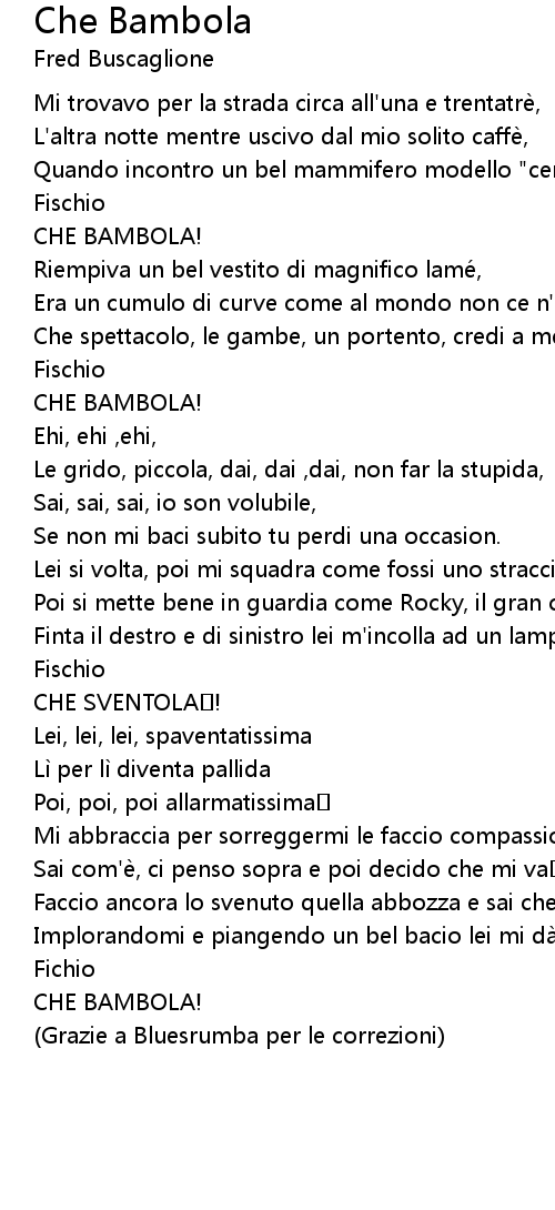| Song | Che Bambola |