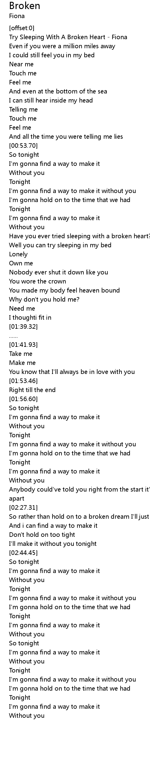 | [00:01.50] | Try Sleeping With A Broken Heart - Fiona |