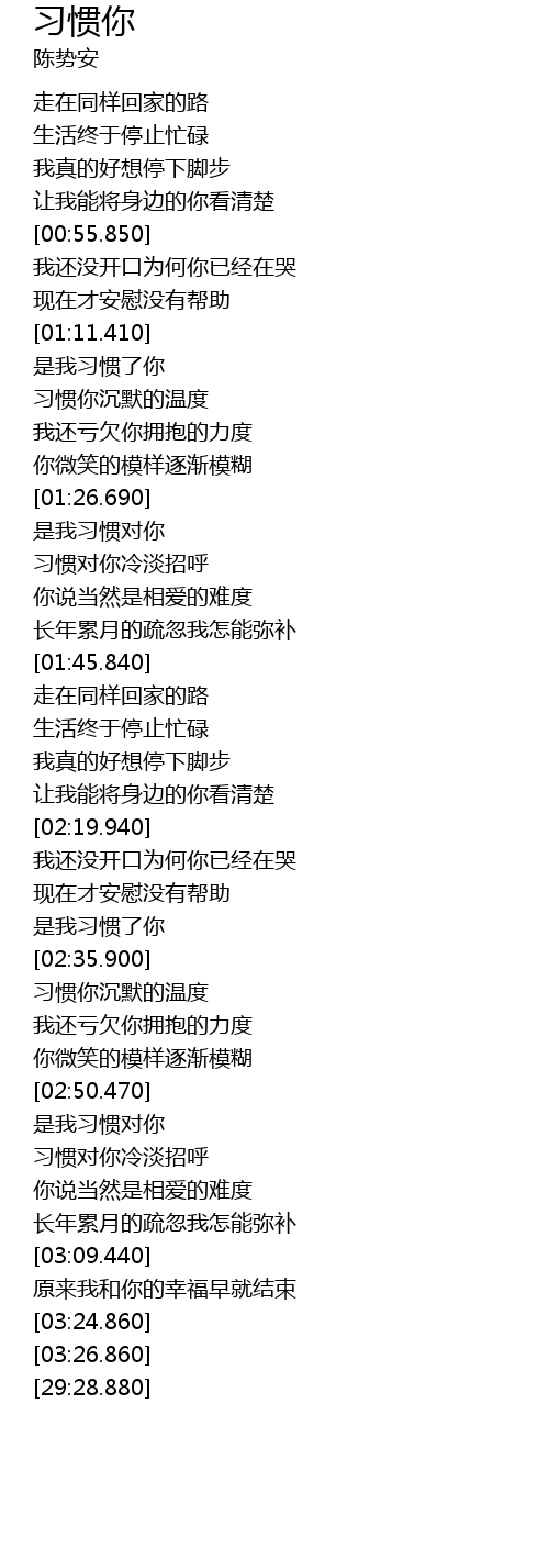 | [02:53.870] | 习惯对你冷淡招呼 |