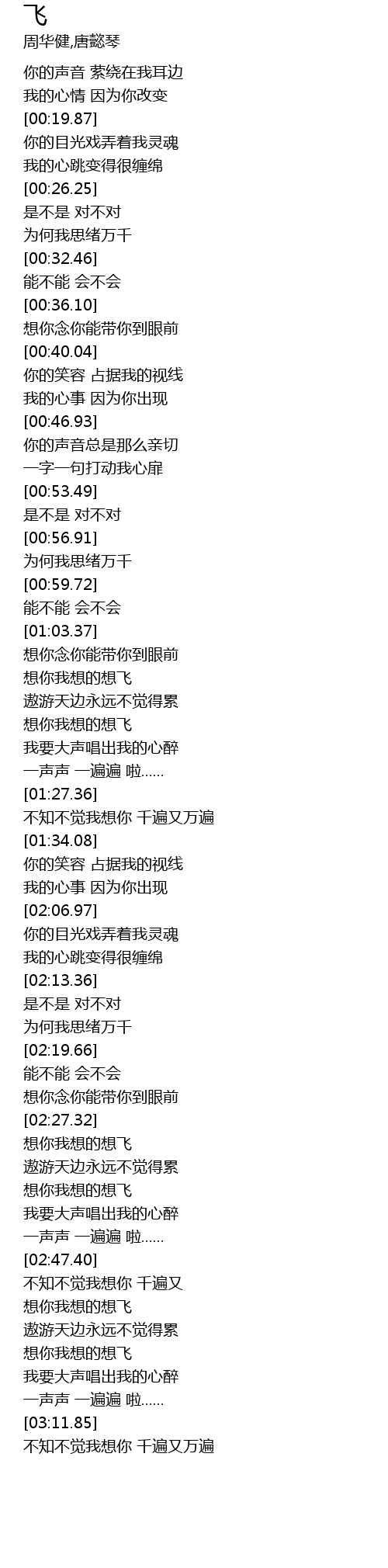 | [02:34.91] | 想你我想的想飞 |