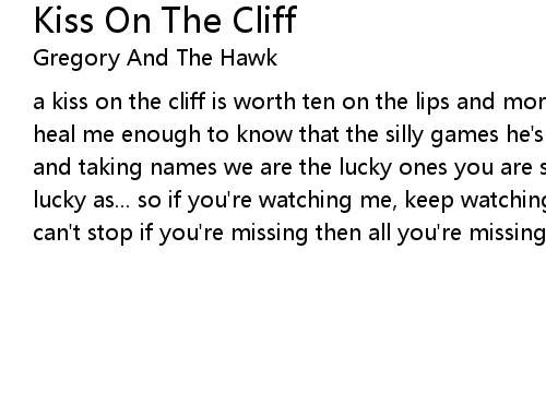 | a kiss on the cliff is worth ten on the lips and more you seem like a shadow but heal me enough to know that the silly games he's been playing are saving lives and taking names we are the lucky ones you are so lucky, son noone else is as lucky as... so if you're watching me, keep watching sit and tingle like you can't stop if you're missing then all you're missing is you |