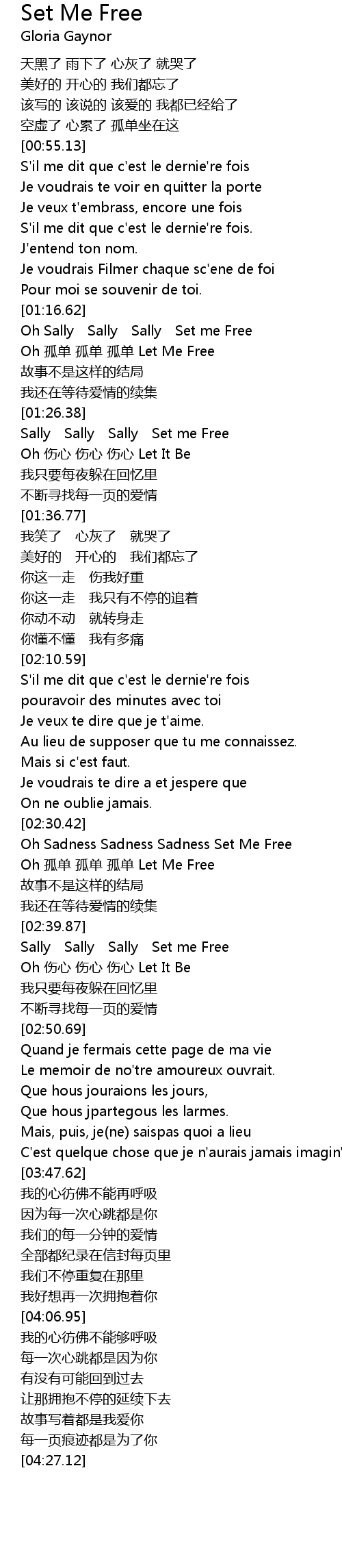 | [02:40.44] | Sally Sally Sally Set me Free |
